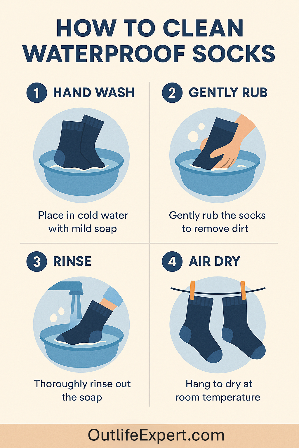 - Hand Washing: Soak the socks in lukewarm water with detergent. Gently rub them to remove dirt, then rinse thoroughly.